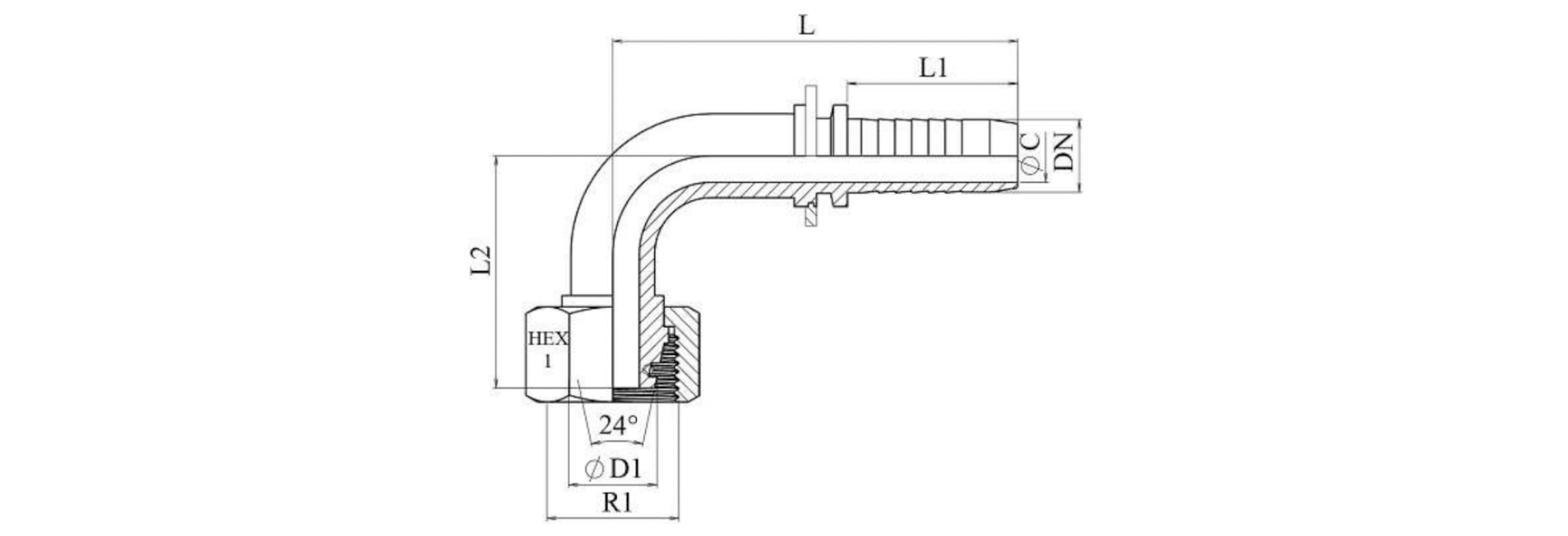 HIDRAVLIČNI PRIKLJUČEK DKOL 10 L ŽENSKI KOLENO 90 DN10-M16x1,5