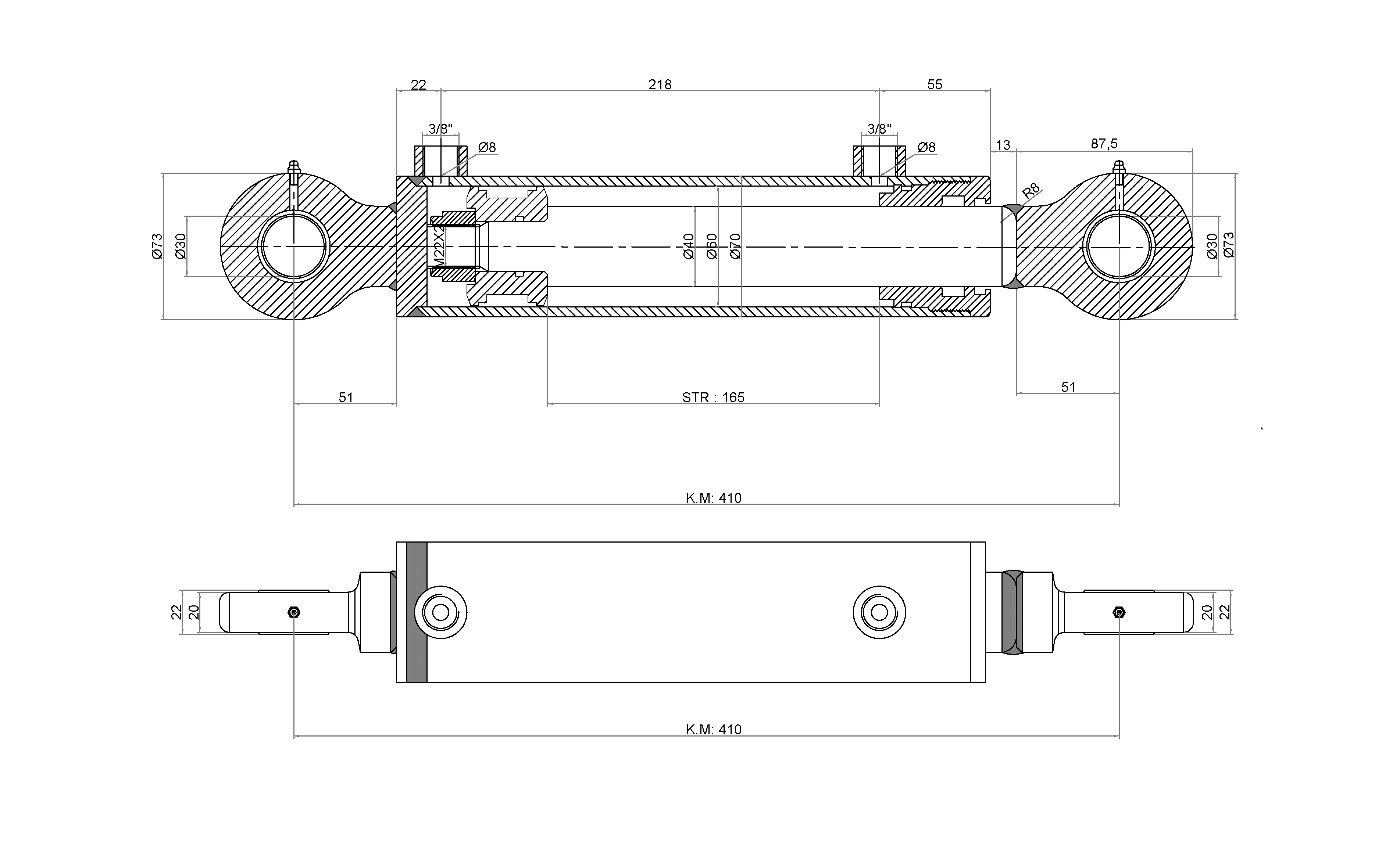 | Sylinderens trekkraft (ved 250 bar): | 3,93 t |