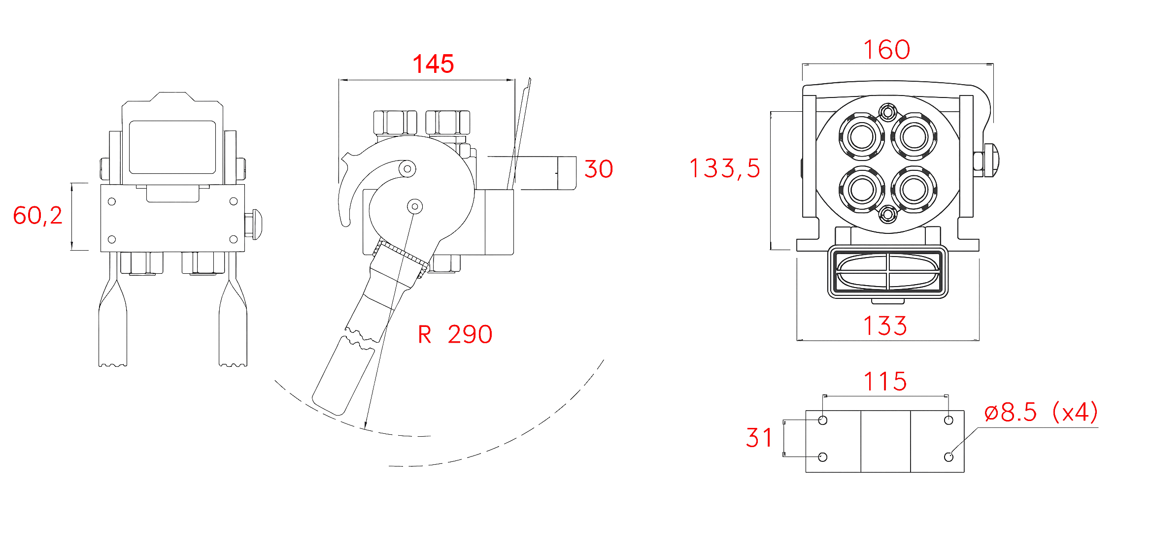 - Jordbruks-, bygg- och skogsmaskiner: för anslutning av arbetsredskap (t.ex. plogar, hydrauliska armar, tänger …) som kräver flera hydraulledningar.