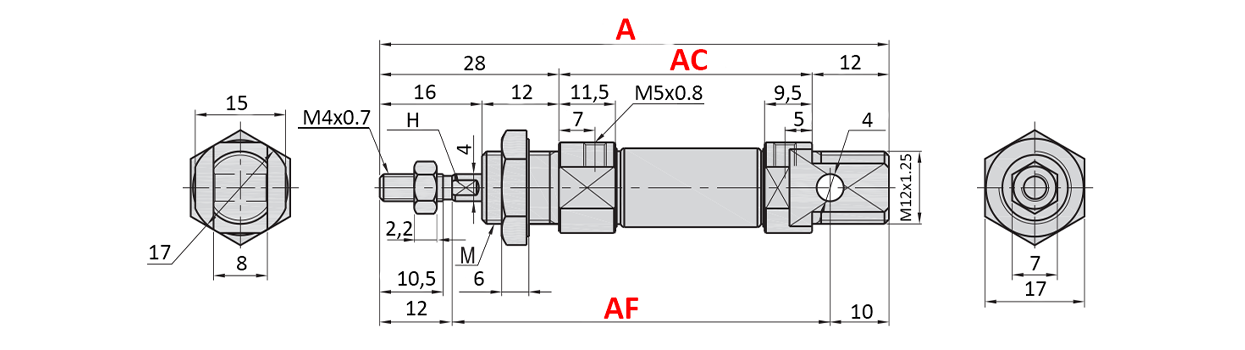 PNEUMATISCHER ZYLINDER PCAI 8/4-030 CE ISO6432