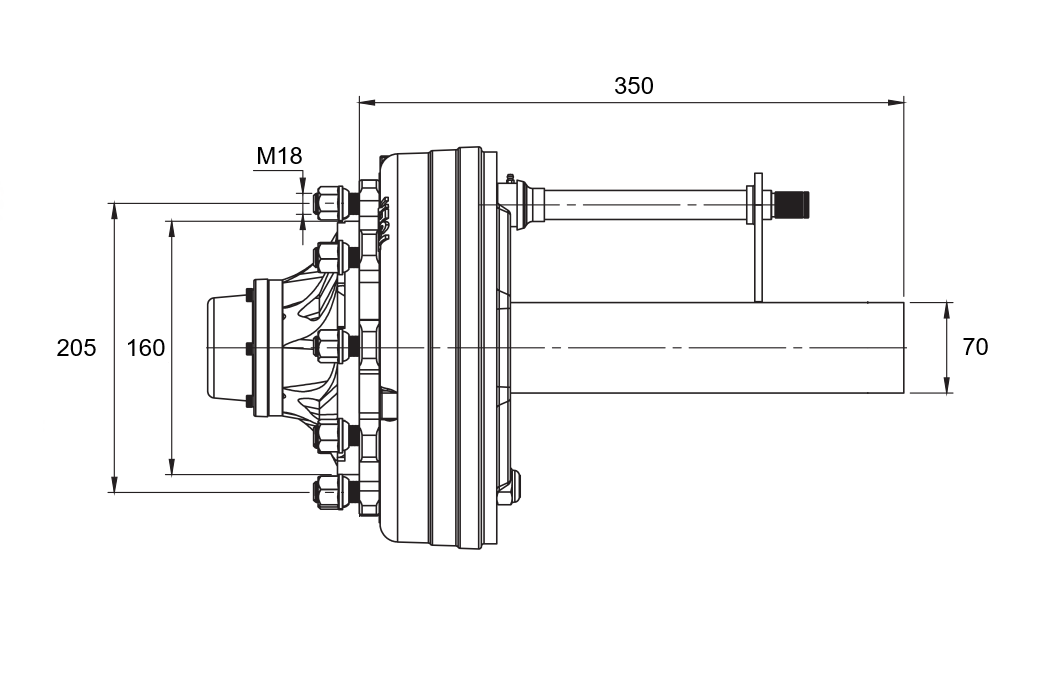 HALVAXEL MED BROMSAR - 3600 kg (6 SKRUVAR) - 250 mm