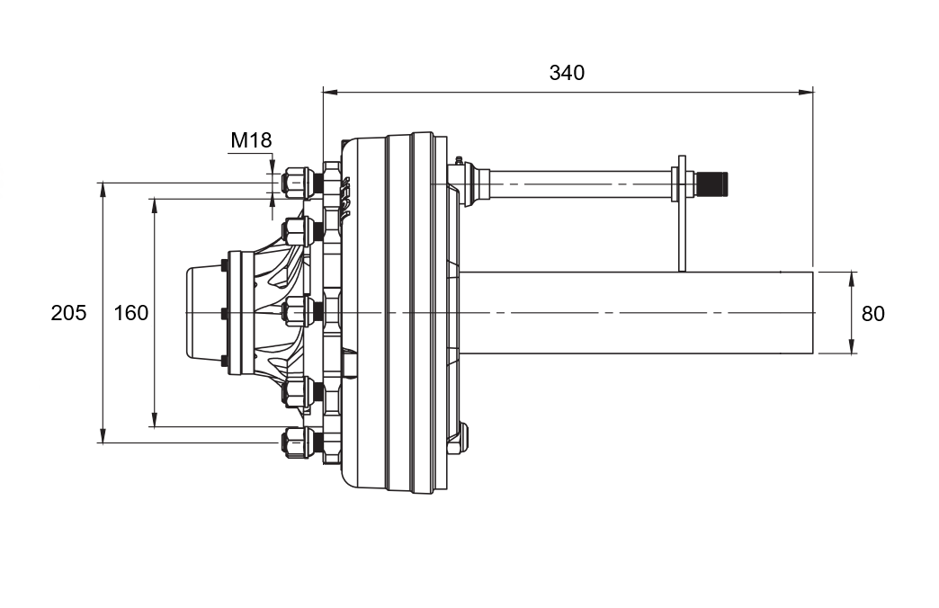 HALVAXEL MED BROMSAR - 4400 kg (6 SKRUVAR) - 340 mm
