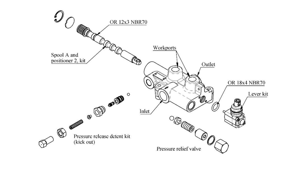 Ventilen har en automatisk tryckavlastningsfunktion. När det inställda trycket nås (fabriksinställning är 150 bar) återgår den automatiskt spaken till neutralläget.