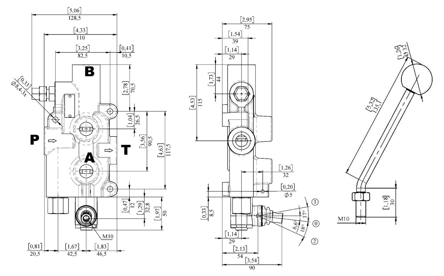 | Anslutningsgänga: | P- och T-port – 3/4", A- och B-port – 1/2" |