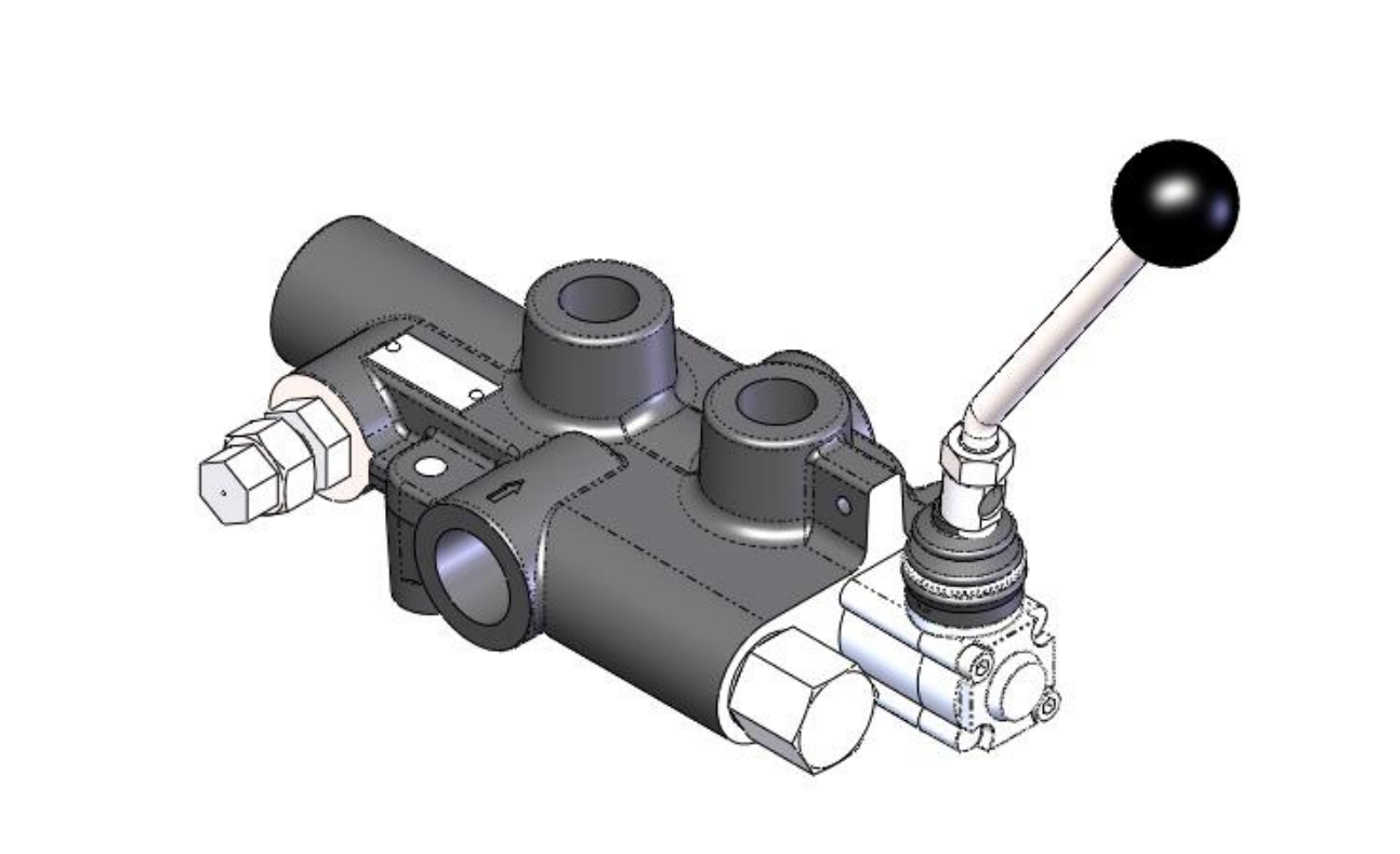P81-RS är en kompakt och robust tvåhastighets hydraulventil avsedd för vedklyvar. Den tillåter ett flöde på upp till 80 l/min och är utrustad med en säkerhetsavlastningsventil.