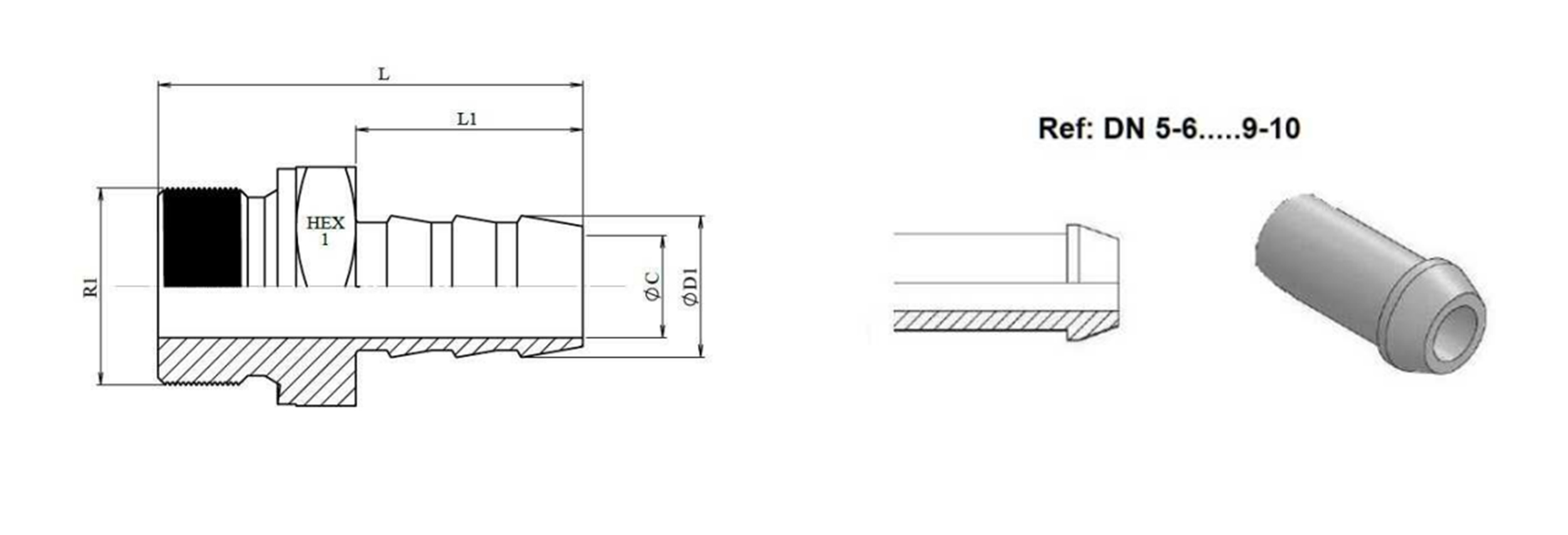 HYDRAULISK HANEKOPPLING M22X1.5 FÖR GUMMISLANG Φ 12-13