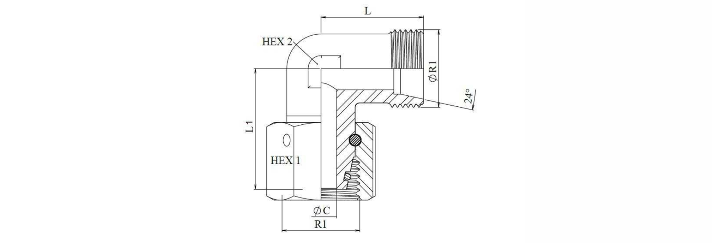 HIDRAVLIČNO KOLENO 90° L-8 Z VRTLJIVO MATICO M14x1,5